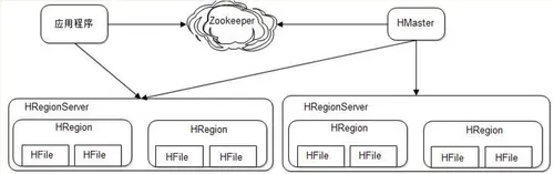 所有HRegion的信息(存储key的值区间,所在HRegionServer地址,端口等信息)都记录在HMaster服务器上,为了保证高可用,HBase启动多个HMaster,并通过Zookeeper选主,应用程序通过Zookeeper获取主Master地址,输入Key值获得Key所在HRegionServer地址,然后请求HRegionServer上的HRegion,获得需要的数据。