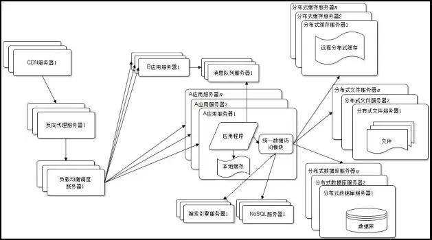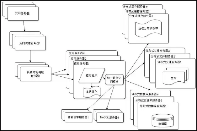 NoSQL和搜索引擎对可伸缩的分布式有更好的支持。应用服务器则通过一个统一数据访问模块访问各种数据,减轻应用程序管理诸多数据源的麻烦。