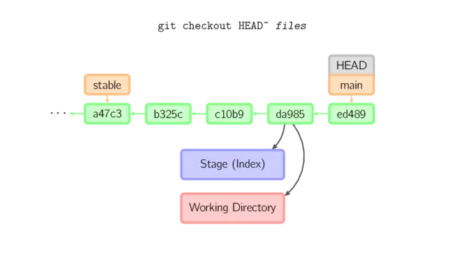 如果给了文件名(或者 -p选项), 那么工作效果和带文件名的checkout差不多,除了索引被更新。