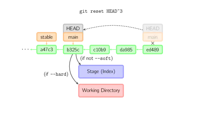 | soft | 回退到某一个版本,工作区不变,需手动git checkout | 修改 | 不修改 | 不修改 |