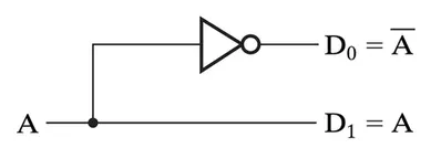 解码器的作用是将编码后的二进制值解码为一组独立的位,是一种具有N路输入和 路输出的复杂门电路。最小的解码器是1线-2线解码器: