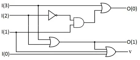 | I3 | I2 | I1 | I0 | O1 | O0 | v |